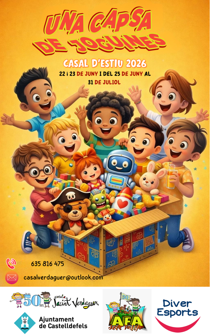 El centre d’interès del casal d’estiu girarà al voltant de la temàtica “Una capsa de joguines”, un fil conductor que ens permetrà treballar la imaginació, la creativitat i el joc com a elements fonamentals en el desenvolupament dels infants. A partir d’aquesta idea, el casal es convertirà simbòlicament en una gran capsa plena de joguines, històries i aventures per descobrir.